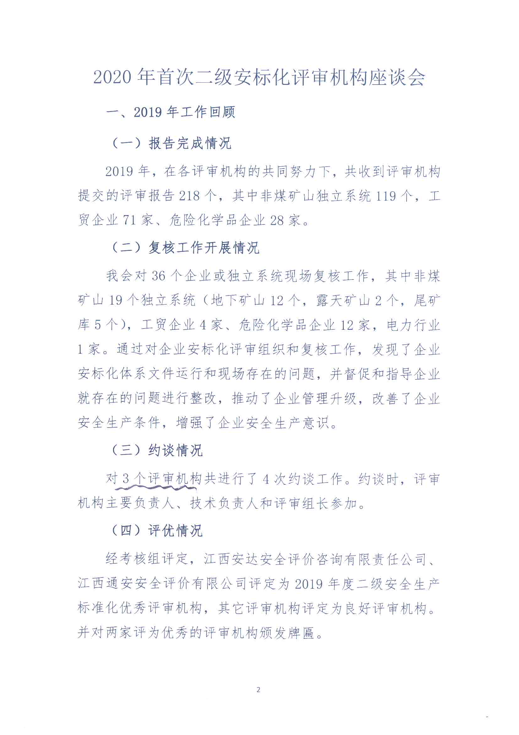 2020年首次二級安標化評審機構座談會